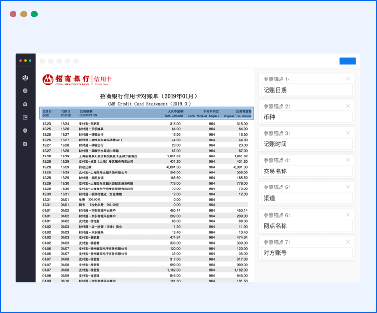 支持几千家银行流水识别