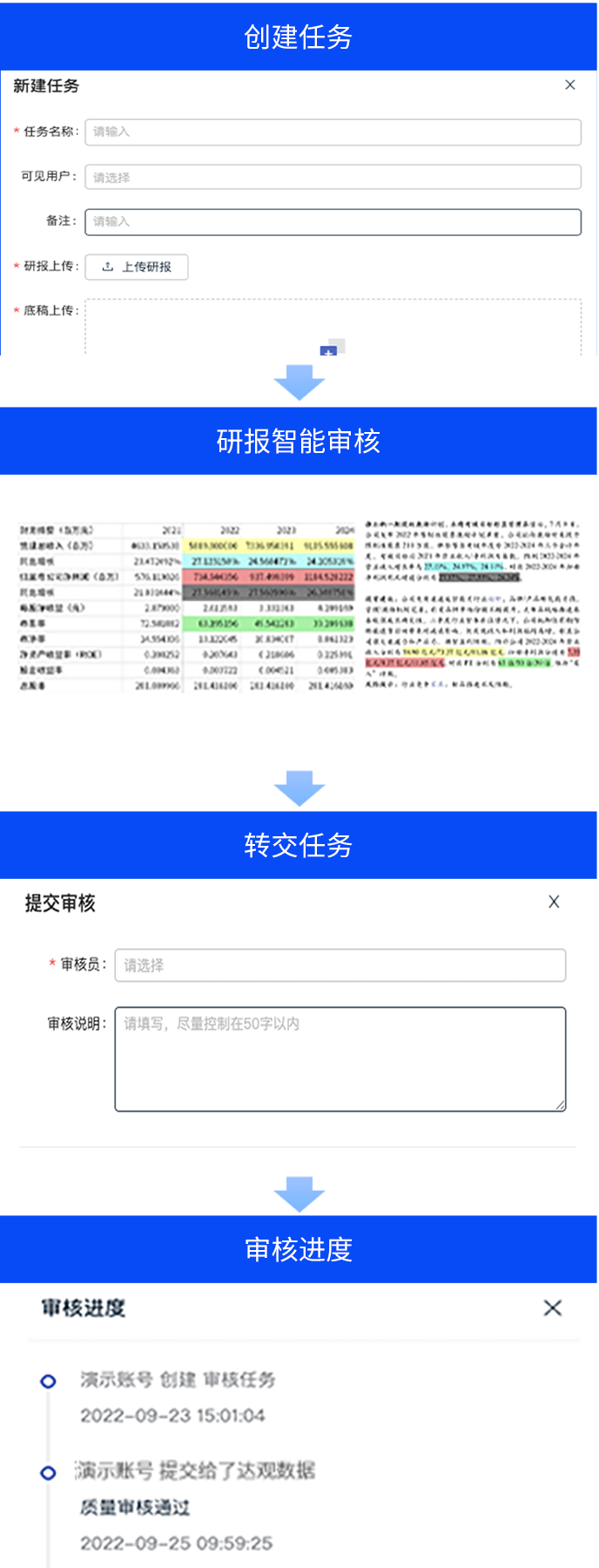 研报审核 研究所在发布公开公司、行业、宏观、策略等研报时对其进行全方位质控合规审核。